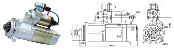 型號:SZQ21095017 規(guī)格:24V 7.5kW 特性:模數(shù):3.5 齒數(shù):11 配套機型:玉柴:6L、6M(50C端為兩針式插頭)